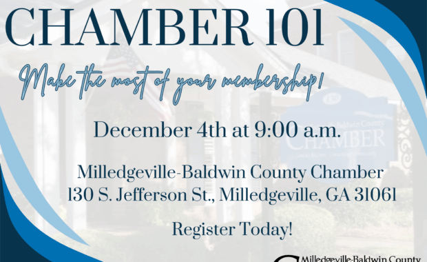 Are you a new member of the Milledgeville-Baldwin County Chamber or simply looking to maximize the benefits of your membership? Join us for Chamber 101 on Thursday, December 4th at 9:00 a.m. at the Chamber office! This informative session is designed to help you make the most of your membership by … [Learn More...] about Chamber 101